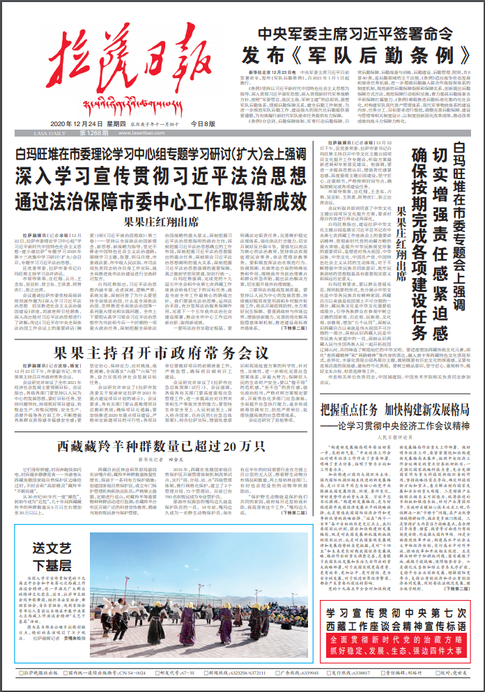 西藏自治區(qū)黨委常委、拉薩市委書記白瑪旺堆表示,希望《拉薩日報》能夠用拉薩百姓喜聞樂見的寫作方式,做好拉薩政策方針的宣傳報道工作,文章要帶著溫度。