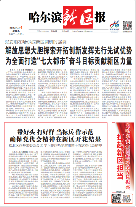 《哈爾濱新區(qū)報》將立足新區(qū)之“新”,緊扣新區(qū)中俄全面合作重要承載區(qū)、東北地區(qū)新的經(jīng)濟增長極、老工業(yè)基地轉(zhuǎn)型發(fā)展示范區(qū)和特色國際文化旅游聚集區(qū)的“三區(qū)一極”的發(fā)展定位,進一步發(fā)揮新區(qū)在全市全省的引領(lǐng)作用,致力于反映新區(qū)經(jīng)濟發(fā)展、社會進步、營商環(huán)境、對外開放等方面的新探索、新成效和新經(jīng)驗,從新引擎、新創(chuàng)造、新產(chǎn)業(yè)、新城市、新生活、新風貌等多個角度見證新區(qū)的成長和發(fā)展,感受新區(qū)律動的脈搏,發(fā)出主流媒體的最強音,傳遞好新區(qū)聲音,講好新區(qū)故事。