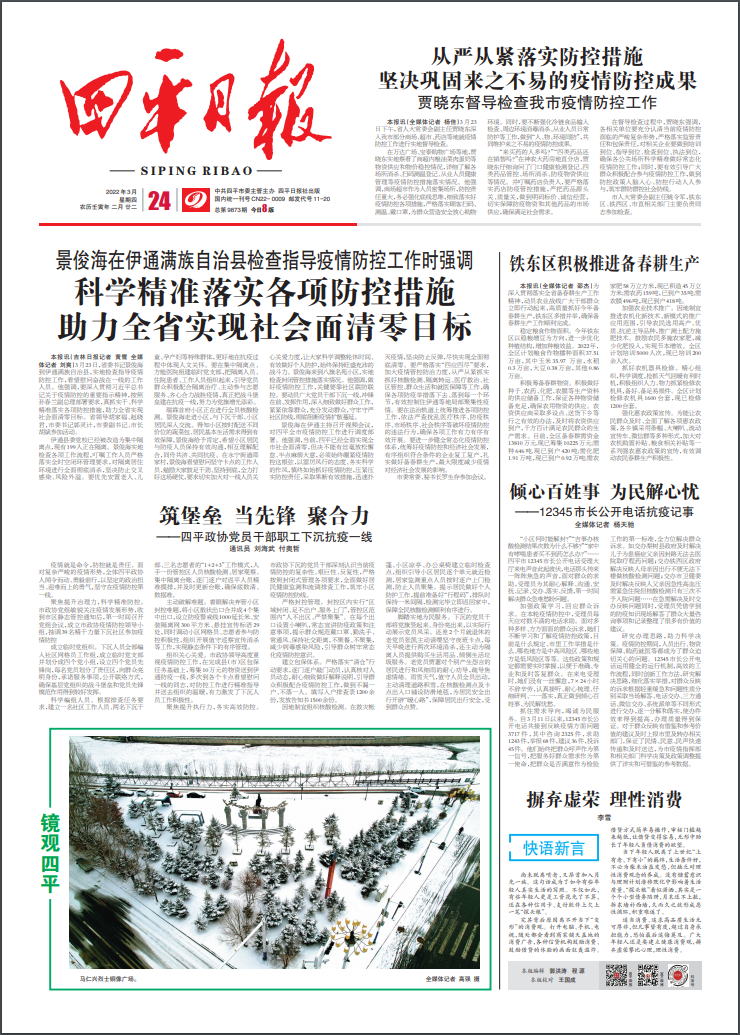 在各種新媒體百花齊放的當(dāng)下,通過(guò)不斷創(chuàng)新、融合,我們一定會(huì)有足夠的底氣去應(yīng)對(duì)各種發(fā)展變化。我們將一如既往,緊扣時(shí)代主題,宣傳黨的主張,反映群眾心聲,記錄英城異彩紛呈的發(fā)展篇章,與廣大讀者一道參與、見(jiàn)證、謳歌和諧四平的生動(dòng)實(shí)踐。我們要進(jìn)一步把四平日?qǐng)?bào)辦出特色、辦出水平,始終堅(jiān)持正確輿論導(dǎo)向,大力唱響時(shí)代主旋律,在營(yíng)造健康向上、豐富生動(dòng)的主流輿論方面發(fā)揮更大作用。始終堅(jiān)持貼近實(shí)際、貼近生活、貼近群眾,在增強(qiáng)新聞報(bào)道的親和力、吸引力、感染力方面取得新的進(jìn)展。始終堅(jiān)持改革創(chuàng)新,加強(qiáng)傳播能力建設(shè),在提高輿論引導(dǎo)的權(quán)威性、公信力、影響力方面邁出新的步伐,讓紅色輿論地帶強(qiáng)力發(fā)聲。作為地市級(jí)黨報(bào),我們?cè)谵D(zhuǎn)型融合、創(chuàng)新發(fā)展上,還有更多的路要走,還要進(jìn)行更多的探索和實(shí)踐,不忘初心,砥礪奮進(jìn),共同創(chuàng)造更加美好的明天。