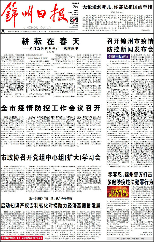 《錦州日報》堅持正確的輿論導(dǎo)向,緊跟時代步伐,突出城市特點,融思想性、知識性、服務(wù)性為一體,內(nèi)容上深入及時報道國際國內(nèi)及省市政治、經(jīng)濟(jì)、文化新聞,角度新穎,內(nèi)容活潑,貼近社會反映生活,關(guān)注民生、傳播信息,深受廣大讀者厚愛。
