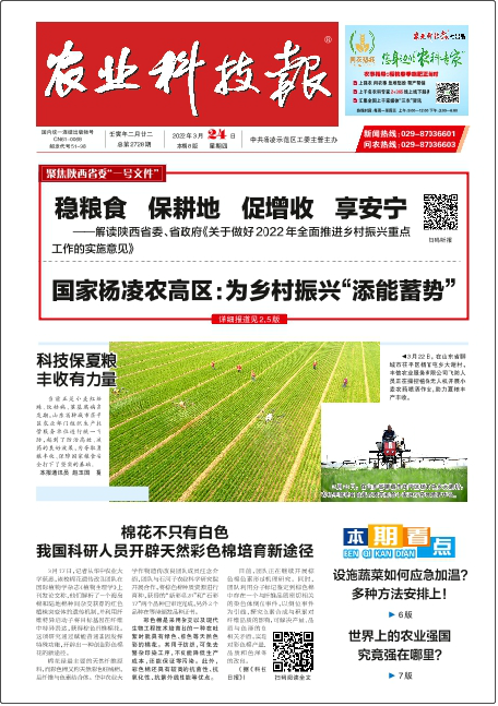 《農(nóng)業(yè)科技報》是國內(nèi)外公開發(fā)行的全國性農(nóng)業(yè)科技類專業(yè)報紙,是國家楊凌農(nóng)業(yè)高新技術(shù)產(chǎn)業(yè)示范區(qū)黨工委主辦的農(nóng)業(yè)類四開八版彩色報紙,每周四期,每期發(fā)行量23.6萬份,全年發(fā)行量2454.4萬份。國內(nèi)統(tǒng)一刊號CN61-0068,郵發(fā)代號51-98,每期發(fā)行同時在西安、鄭州、石家莊、濟(jì)南開印,報紙通過郵局發(fā)行。