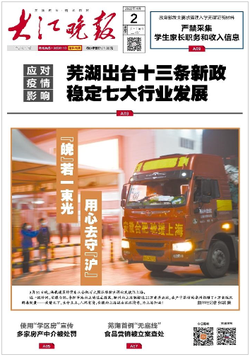 《大江晚報》是蕪湖日報報業(yè)集團主辦的以城市讀者為主要對象的綜合性報紙,于1996年1月1日創(chuàng)刊(時稱《蕪湖晚報》)!洞蠼韴蟆匪拈_32版(周六、日16版),彩色印刷。以“宣傳政策,豐富生活,激濁揚清,服務(wù)群眾”為辦報宗旨,格調(diào)高雅,特色清新,內(nèi)容琳瑯滿目,可親可讀。是蕪湖及周邊邊區(qū)讀者最喜愛的報紙之一,是皖江和皖南地區(qū)日發(fā)行量最大的報紙,已經(jīng)成為安徽發(fā)行量、廣告量、社會影響力最大的報紙之一,是皖江地區(qū)報業(yè)的“領(lǐng)頭羊”。