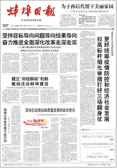 2021年12月20日,今天是《蚌埠日?qǐng)?bào)》和《淮河晨刊》的合刊,是2022年《蚌埠日?qǐng)?bào)》的首次試刊。2022年,《蚌埠日?qǐng)?bào)》擴(kuò)版至每期12版,《淮河晨刊》?。