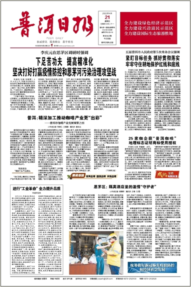 《普洱日?qǐng)?bào)》是中共思茅地委的機(jī)關(guān)報(bào)。從它的前身《思普人民報(bào)》1949年8月8日創(chuàng)刊起始,已歷經(jīng)54年,其間先后經(jīng)過了《思普人民報(bào)》—《普洱通訊》——《普洱報(bào)》——《思茅報(bào)》——《思茅通訊》——《思茅報(bào)》——《思茅日?qǐng)?bào)》---《普洱日?qǐng)?bào)》的更迭演變與發(fā)展更新,現(xiàn)已成為思茅地區(qū)唯一公開發(fā)行的對(duì)開四版黨報(bào)和最具影響力的主流媒體!端济┤?qǐng)?bào)》的手書體報(bào)頭,源自已故全國人大常委會(huì)委員長朱德手跡,其中《思茅報(bào)》報(bào)頭于1957年5月題寫的。