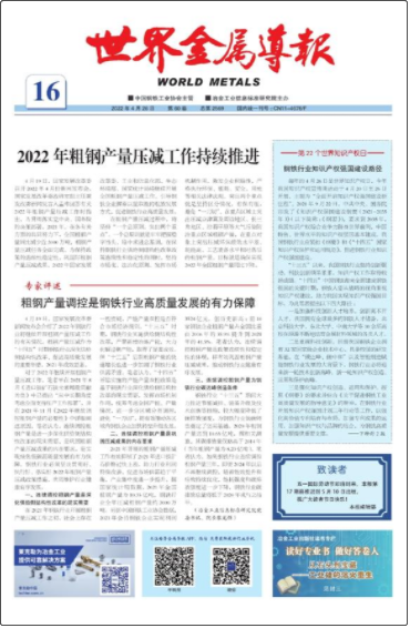 經(jīng)過近50余年發(fā)展,世界金屬導(dǎo)報(bào)已是中國發(fā)行量最大、覆蓋范圍最廣、影響力最強(qiáng)的鋼鐵行業(yè)專業(yè)科技媒體。