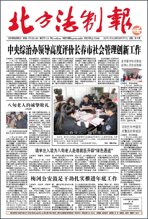 北方法制報 《北方法制報》是吉林日報報業(yè)集團(tuán)子報之一,是吉林省惟一公開出版發(fā)行的法制類專業(yè)報,面向全國發(fā)行!侗狈椒ㄖ茍蟆芬詧猿中麄饕婪ㄖ螄铰裕S護(hù)國家法律尊嚴(yán),普及群眾法律知識,強(qiáng)化社會輿論監(jiān)督,服務(wù)社會各界讀者為宗旨,立足政法,面向社會,關(guān)注焦點(diǎn),宣傳法制,弘揚(yáng)正氣,鞭撻丑惡,開闊視野,警策人生。