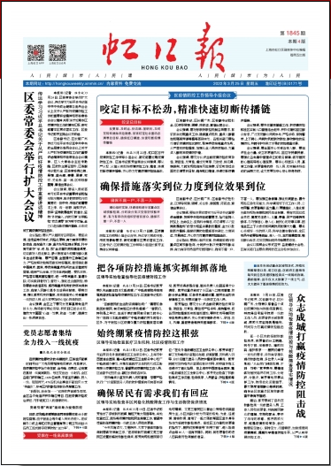 《虹口報》于1993年11月22日創(chuàng)刊,1994年試刊。每月1期,是年4月起改為半月版,全年出版25期。1995年下半年,改為旬刊,全年共出版34期。1996年7月,改為周報。9月起,由四開四版改為二開四版,全年共出版47期,辟有20個欄目。1997年,《虹口報》創(chuàng)刊100期,區(qū)委、區(qū)政府、區(qū)政協(xié)、市作協(xié)領(lǐng)導(dǎo)題詞、撰文祝賀;召開創(chuàng)刊100期座談會。2000年,《虹口報》充實采編隊伍,實行全員聘用合同制。除編發(fā)黑白版外,增發(fā)彩報20余期、科教文衛(wèi)體專刊33期。2001年,圍繞重大活動、重要會議、重點工程的宣傳,共編報56期、彩版23期、科教文衛(wèi)體專版40期。2002年,開設(shè)特色欄目和專版,宣傳報道“突出重點,發(fā)展兩翼”的戰(zhàn)略。共編報49期、彩版42期、增刊1期、科教文衛(wèi)體專版30期。2003年,《虹口報》改進(jìn)采、編、播手段,以增強(qiáng)宣傳報道的吸引力和感染力。2004年,《虹口報》改版,加強(qiáng)政府信息公開等宣傳。開辟《評論員文章》和《虹口論壇》專欄,編發(fā)90多個專版,調(diào)整版面和色彩設(shè)計。閱讀群覆蓋整個區(qū)域。2006年,《虹口報》全年出版50期,編輯區(qū)情專版52個。至是年11月,《虹口報》發(fā)行第600期,報社特辟2個版面,以圖文并茂的形式編輯出版《紀(jì)念〈虹口報〉創(chuàng)刊600期暨13周年領(lǐng)導(dǎo)專家讀者訪談錄》。2007年,《虹口報》全年出版50期,圍繞區(qū)第八次黨代會、女足世界杯、特奧會保齡球賽、上海國際創(chuàng)意產(chǎn)業(yè)周等重大活動進(jìn)行宣傳報道。
