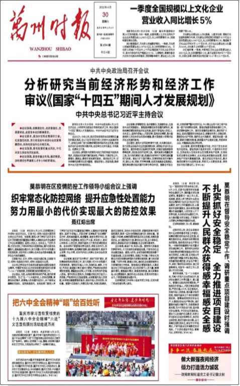 2013年12月23日,為適應(yīng)發(fā)展需要,《萬州時(shí)報(bào)》正式創(chuàng)刊,作為萬州區(qū)委機(jī)關(guān)報(bào),履行黨報(bào)職責(zé),與《三峽都市報(bào)》共同擔(dān)負(fù)起主流媒體職責(zé),萬州也因此成為重慶市唯一擁有兩張公開出版發(fā)行報(bào)紙刊號(hào)的區(qū)縣;