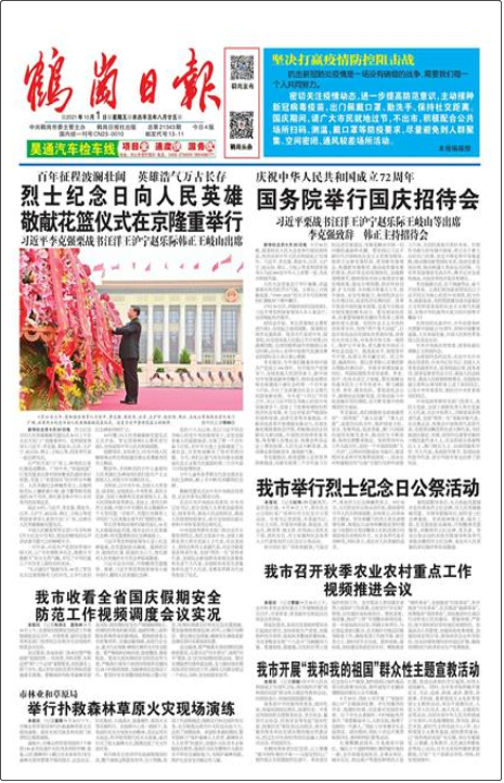 《鶴崗日報》為中共鶴崗市委機關(guān)報,是全市百萬人民了解本地政治、經(jīng)濟及國內(nèi)外各方信息的一個重要媒介,是向人們展示、介紹傳遞信息的一個重要媒體。1947年1月1日正式創(chuàng)刊。《鶴崗日報》與黨同心同德,與讀者風(fēng)雨同舟,熱情謳歌鶴崗改革開放和現(xiàn)代化建設(shè)的偉大成就,忠實記錄鶴崗日新月異的發(fā)展變化,真誠表達鶴崗普通民眾的心聲和意愿,為人民利益鼓與呼。作為省內(nèi)創(chuàng)立最早的地市級黨報之一,《鶴崗日報》從無到有,從小到大,從弱到強,從創(chuàng)刊之初的一份八開二版不定期出刊的小報,發(fā)展到現(xiàn)在擁有兩報(《鶴崗日報》、《鶴崗?fù)韴蟆罚、四刊(《生活周刊》、《攝影?、《未成年人德育周刊》、《安全周刊》)和一通訊(《鶴崗日報通訊》)的規(guī)模;報紙印刷實現(xiàn)了從鉛字排版到激光照排的跨越;報紙顏色實現(xiàn)了從黑白到套紅彩色的跨越;報紙服務(wù)信息實現(xiàn)了從單一到多層面的跨越;辦公形式實現(xiàn)了從紙和筆到無紙化辦公的跨越;辦公條件設(shè)備實現(xiàn)了與時俱進,從落后到與全國報業(yè)同步前進的跨越。
