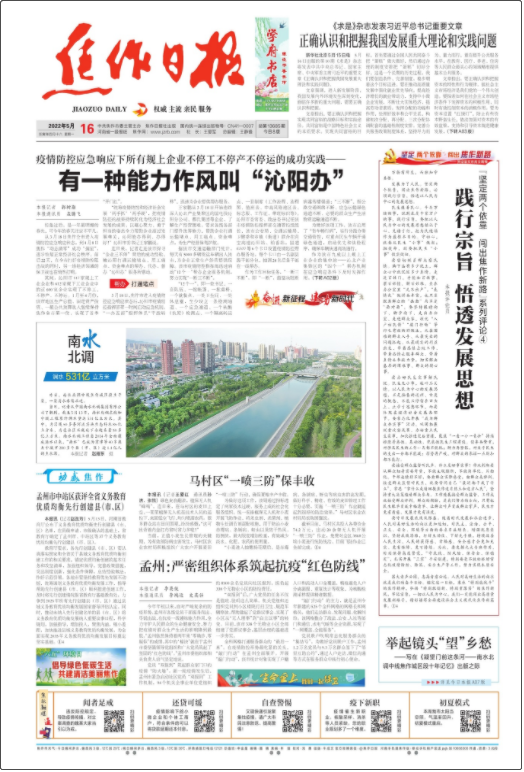 《焦作日報》系中共河南省焦作市委機關(guān)報,創(chuàng)刊于1957年7月,1961年因國家經(jīng)濟困難而?1983年5月1日復刊,F(xiàn)為對開日報,每周出報22張共88個版,期發(fā)行量為7.5萬份,人均發(fā)行量居河南省地市報前茅。 焦作日報社現(xiàn)有正式工作人員140余人,平均年齡32歲。在110余名采編人員中,具有正高級專業(yè)技術(shù)職稱的4人,副高級技術(shù)職稱26人,中級技術(shù)職稱67人。除出版焦作日報外,還在鄭州出版《百姓視點》周報,并在全國地市報中首批出版電子版,加入國際互聯(lián)網(wǎng),建立了焦作新聞網(wǎng),在世界各地均可看到焦作新聞。