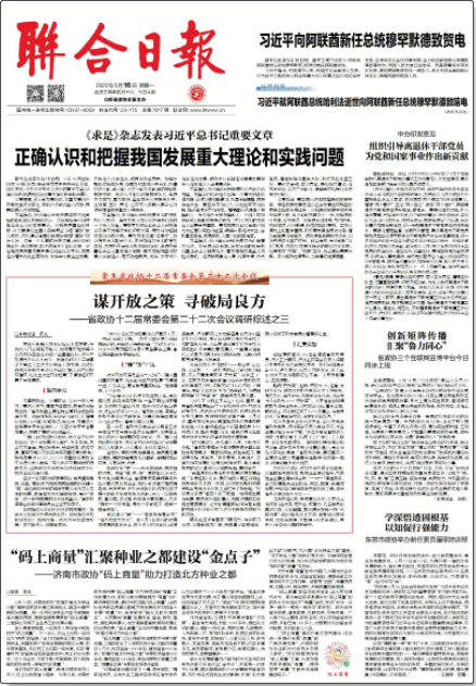 《聯(lián)合日報》是山東省唯一的具有統(tǒng)戰(zhàn)、政協(xié)性質的綜合日報。《聯(lián)合日報》以“弘揚愛國精神,促進聯(lián)合團結,倡導社會民主,振興中華大業(yè)”為宗旨,竭誠為各級黨委政府、各級政協(xié)、各民主黨派、各人民團體、無黨派愛國人士和工商、企業(yè)、民族、宗教、教育、科技、文藝、新聞、出版等各界及港澳人士、臺灣同胞、海外僑胞服務,熔思想性、知識性、歷史性、現(xiàn)實性于一體,在推進中國特色社會主義現(xiàn)代化建設和民主政治建設中具有獨特而重要的作用,在讀者中享有很高的聲譽!堵(lián)合日報》辟設要聞版、綜合新聞版、有社會.民情、經濟時空、健康、各界、文學、藝苑、百姓等版面,逢周三出版《聯(lián)合日報.民生周刊》,周六出版《聯(lián)合日報.文史周刊》。多年來,《聯(lián)合日報》立足政協(xié)、服務統(tǒng)戰(zhàn)、面向社會、通達社情民意,關注國計民生,倡導社會民主,引導社會輿論,辦報水平和出版質量不斷提高,報紙出版期數、發(fā)行份額等指標均居全國同類報刊首位。