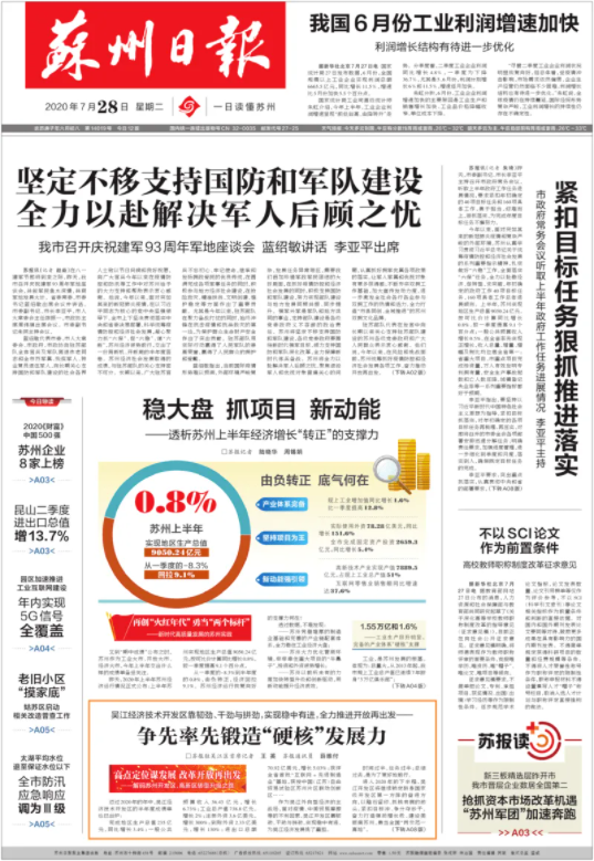 《蘇州日報》是中共蘇州市委主辦的綜合日報,創(chuàng)刊日期為1949年7月1日,蘇州日報立足蘇州,面向全省、發(fā)行全國,蘇州日報先后在蘇州地區(qū)廣泛建立記者站,同時在外地設(shè)立辦事處,現(xiàn)有職工數(shù)百人。