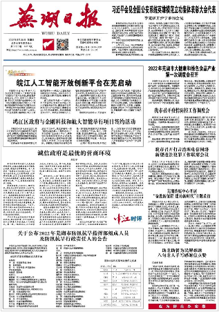 《蕪湖日?qǐng)?bào)》是中共蕪湖市委機(jī)關(guān)報(bào)。周七刊,對(duì)開八版。具有權(quán)威性、指導(dǎo)性、服務(wù)性和貼近性。