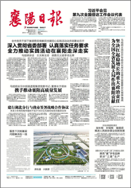 《襄陽日報》的辦報宗旨是:高舉鄧小平理論偉大旗幟,堅持“兩為”服務(wù)方向,堅持正面宣傳為主,堅持為讀者服務(wù),讓市委放心,讓讀者滿意,讓專家認可。