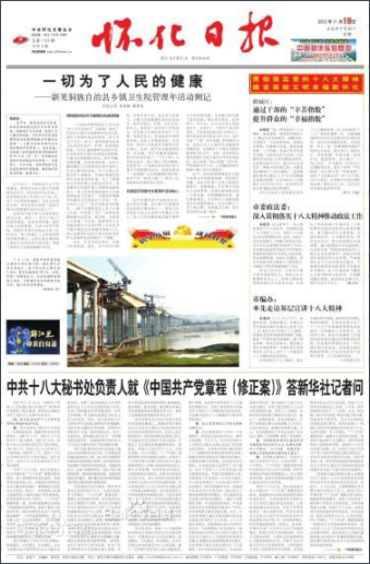 《懷化日?qǐng)?bào)》創(chuàng)刊于1986年10月1日,系懷化市委機(jī)關(guān)報(bào),周七刊,對(duì)開四版,面向全國(guó)公開發(fā)行。從 2001 年起承接彩色印刷。