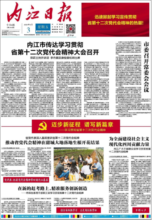 《內(nèi)江日報》作為中共內(nèi)江市委的機(jī)關(guān)報,見證和記錄了內(nèi)江改革開放的偉大歷程,參與和推動了內(nèi)江加快發(fā)展的生動實踐,體現(xiàn)了黨的意志,反映了人民心聲,謳歌了火熱的社會生活,贊美了人民群眾的創(chuàng)造精神,為黨和人民的事業(yè)鼓與呼,為引領(lǐng)社會風(fēng)尚、凝聚人心、鼓舞斗志發(fā)揮了重要作用,為內(nèi)江及內(nèi)江新聞文化事業(yè)的發(fā)展與進(jìn)步作出了重要貢獻(xiàn)。