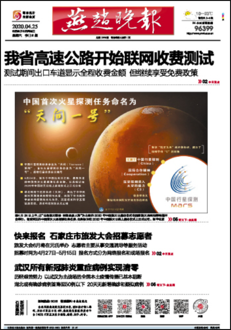《燕趙晚報》是河北省會影響力較大的報刊,以省會石家莊市為主要發(fā)行區(qū)域,輻射省內(nèi)主要中等城市,最高發(fā)行量35萬份。報紙內(nèi)容豐富,信息量大, 服務(wù)性強(qiáng),被當(dāng)?shù)刈x者譽(yù)為“老百姓自己的報紙”。
