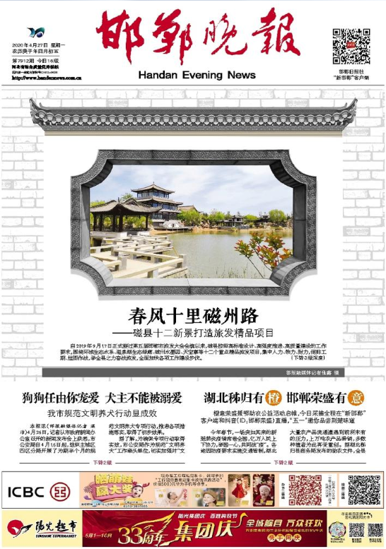 《邯鄲晚報》創(chuàng)刊于1994年月1月1日,“邯鄲晚報”四個字是毛澤東主席的親筆組合而成。是對開12版,每周共六刊(周一至周五,周六特刊),日發(fā)行量突破11萬份。其辦報宗旨是:堅持黨的基本路線,立足邯鄲,面向家庭,宣傳政策,傳遞信息,傳播知識,提供娛樂,為讀者提供全方位服務(wù)。
