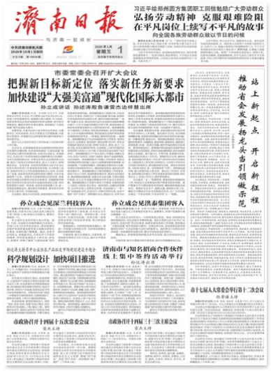 《濟(jì)南日報》(Jinan Daily)是“泉城”山東省省會濟(jì)南市(副省級)的機(jī)關(guān)報,是山東省發(fā)行量大、覆蓋面廣、權(quán)威性強(qiáng)、信譽度高的大型綜合日報之一。