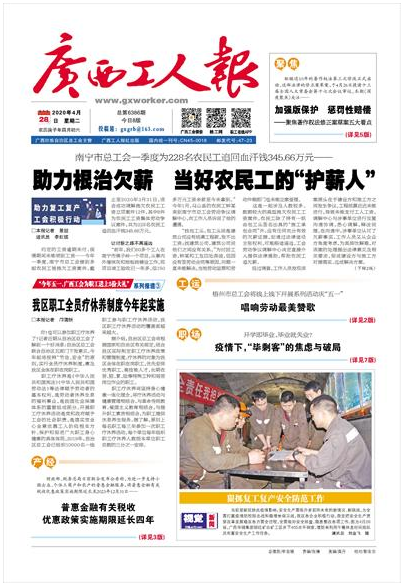 《廣西工人報》是廣西壯族自治區(qū)總工會的機關(guān)報,創(chuàng)刊于1958年5月1日,是全國省(區(qū))級工人報創(chuàng)辦較早的報紙之一。 1961年2月5日因故停刊,1985年1月30日復(fù)刊。1991年1月更名為《勞動者報》,1995年5月1日恢復(fù)《廣西工人報》報名。