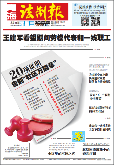 青海法制報(bào)除及時(shí)地報(bào)道國(guó)內(nèi)省內(nèi)重大新聞外,還用較大篇幅介紹精神文明建設(shè)和綜合治理典型及普法動(dòng)態(tài),通過(guò)新鮮、生動(dòng)、翔實(shí)的報(bào)道展示普通百姓的文化生活、倫理道德及經(jīng)濟(jì)等方面的生活以民事、行政、經(jīng)濟(jì),刑事案例釋法,為廣大群眾學(xué)法用法服務(wù)。