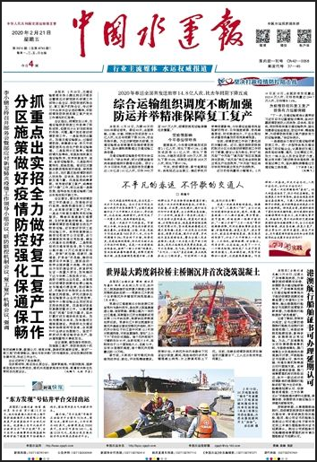《中國水運報》創(chuàng)刊于1984年7月1日,由交通運輸部主管、中國水運報社主辦,是中國紙媒領域唯一報道中國水路交通為主要內容的報紙。