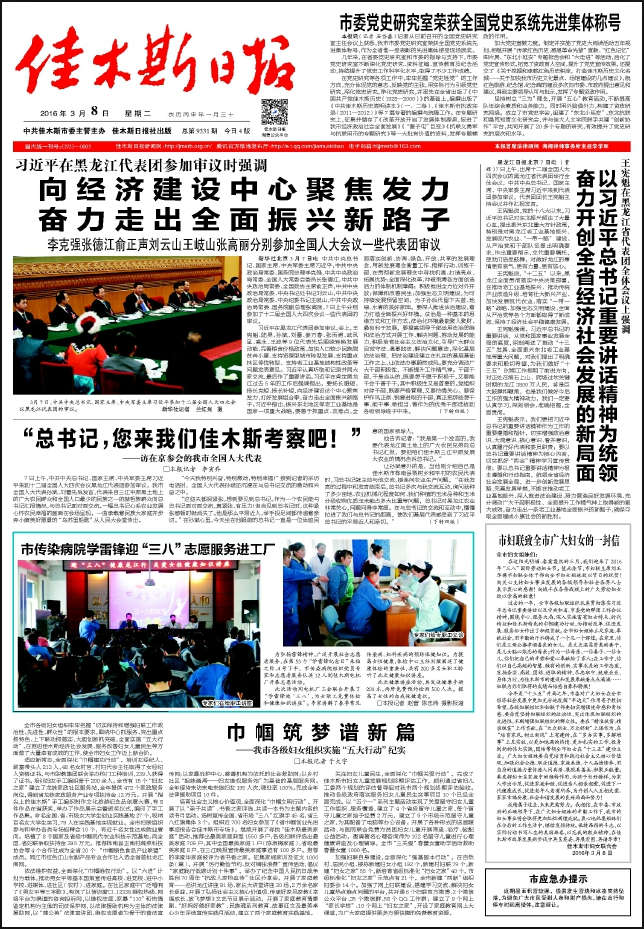 《佳木斯日報》是佳木斯市委機關(guān)報,具有50多年的前史,對佳木斯各條戰(zhàn)線的作業(yè)具有輔導(dǎo)性效果,及時傳達(dá)國家和省各項方針、信息,使全市各級黨委及時把握有關(guān)方針,及時了解上級方針,在上情下達(dá)上具有嚴(yán)重效果。一起,市民的要求、希望也是經(jīng)過這張報紙傳達(dá)給上級部門,使上級部門把握第一手材料,依據(jù)市民的要求希望擬定修正有關(guān)方針,這張報紙是聯(lián)絡(luò)黨和大眾的重要橋梁樞紐。