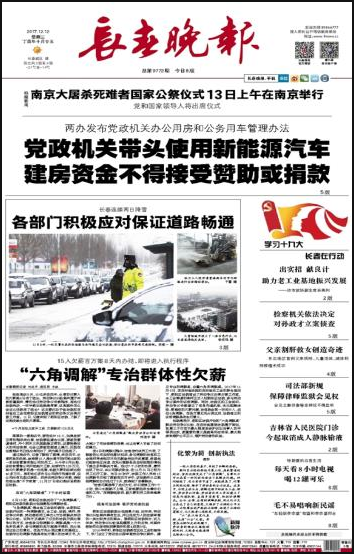 《長(zhǎng)春晚報(bào)》首要版要有國(guó)內(nèi)要聞、 國(guó)際要聞、我國(guó)報(bào)導(dǎo)、國(guó)際報(bào)導(dǎo)、長(zhǎng)春新聞(時(shí)政、歸納、社會(huì)、熱線、財(cái)經(jīng)、民生),競(jìng)界、娛事,金融證券、股市行情、天天彩經(jīng),消費(fèi)時(shí)髦(轎車、醫(yī)療、保健、家電等),寫實(shí)、連載、副刊、廣告等。每周一至周五為對(duì)開十六到二十四版;周六、周日為對(duì)開八到十二版。