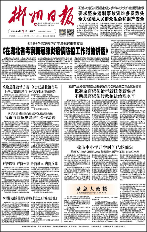 《郴州日報》是中共郴州市委機關(guān)報,1989年7月1日復(fù)刊,郴州地區(qū)最重要、最權(quán)威的新聞媒體,現(xiàn)為對開8版周6刊,除正報外,每周還有《周末》?,彩色印刷,自辦發(fā)行,期發(fā)行近6萬份。