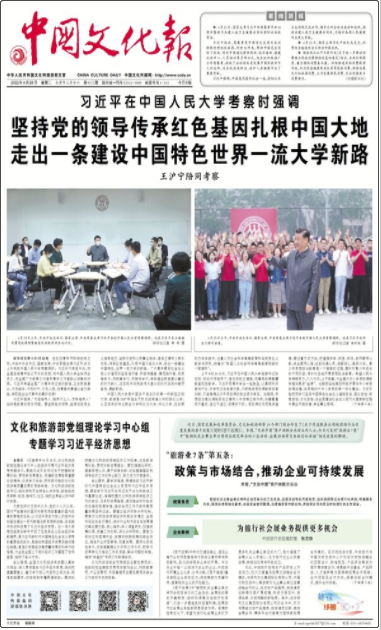 《中國文化報》以科學理性的精神采編新聞,以簡潔明快的形式表現(xiàn)新聞;著眼中國文化行業(yè),聚焦中國文化事業(yè)和文化產(chǎn)業(yè)發(fā)展,揭示全球經(jīng)濟環(huán)境下中國文化行業(yè)發(fā)展規(guī)律和走勢,及時準確地報道國內(nèi)外文化事業(yè)和文化產(chǎn)業(yè)的熱點新聞和重要信息。