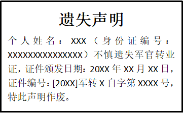 軍官轉(zhuǎn)業(yè)證遺失聲明