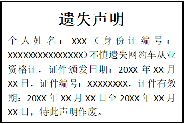 網(wǎng)約車從業(yè)資格證遺失聲明