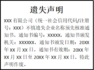 企業(yè)名稱預(yù)先核準(zhǔn)通知書遺失聲明