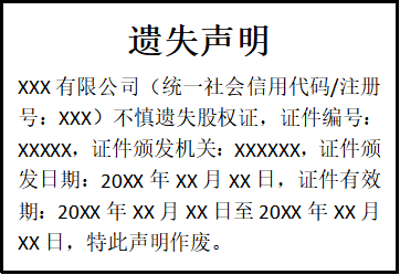 股權(quán)證遺失聲明