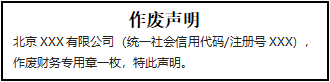 北京XXX有限公司(統(tǒng)一社會(huì)信用代碼/注冊(cè)號(hào)XXX),作廢財(cái)務(wù)專用章一枚,特此聲明。