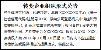 轉(zhuǎn)變企業(yè)組織形式公告