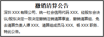 深圳XXX有限公司,統(tǒng)一社會信用代碼XXX,經(jīng)股東會決議/股東決定一致決定撤銷注銷清算事宜,撤銷清算組,免去清算負(fù)責(zé)人譚XXX、清算組成員馬XXX、楊XXX職務(wù),特此公告。