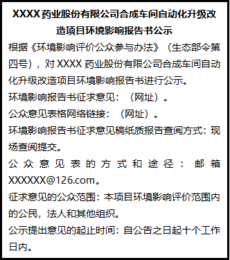 根據(jù)《環(huán)境影響評價公眾參與辦法》(生態(tài)部令第四號),對XXXX藥業(yè)股份有限公司合成車間自動化升級改造項目環(huán)境影響報告書進(jìn)行公示。