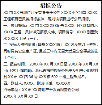 XX市XX房地產(chǎn)開發(fā)有限責(zé)任公司XXXX小區(qū)別墅XXXX工程項(xiàng)目已具備招標(biāo)條件,現(xiàn)對該項(xiàng)目進(jìn)行公開招標(biāo)。