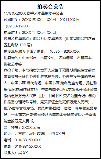 北京XX20XX春季藝術(shù)品拍賣會公告
