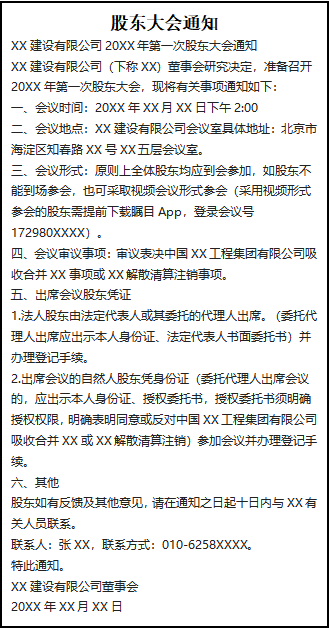 XX建設(shè)有限公司(下稱XX)董事會研究決定,準(zhǔn)備召開20XX年第一次股東大會,現(xiàn)將有關(guān)事項(xiàng)通知如下: