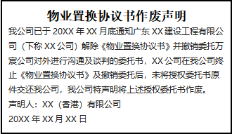 物業(yè)置換協(xié)議書作廢聲明